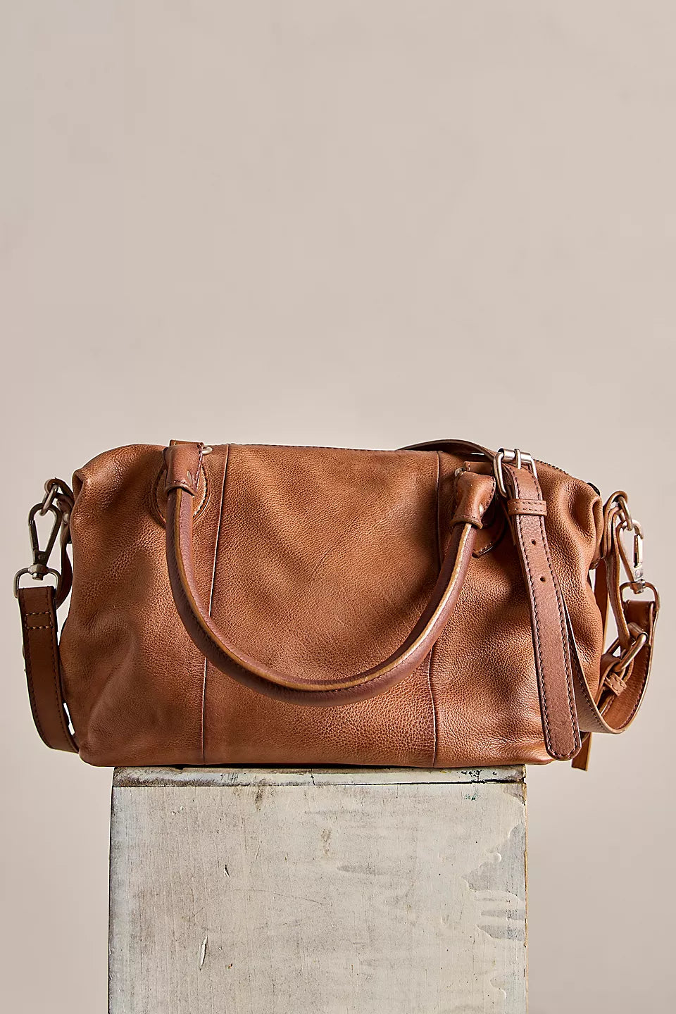 Features: Vintage-inspired leather fabrication, two carrying straps, adjustable and detachable shoulder strap, main zip entry, exterior zip pockets, interior zip pocket, leather pull tabs, logo embossed tag