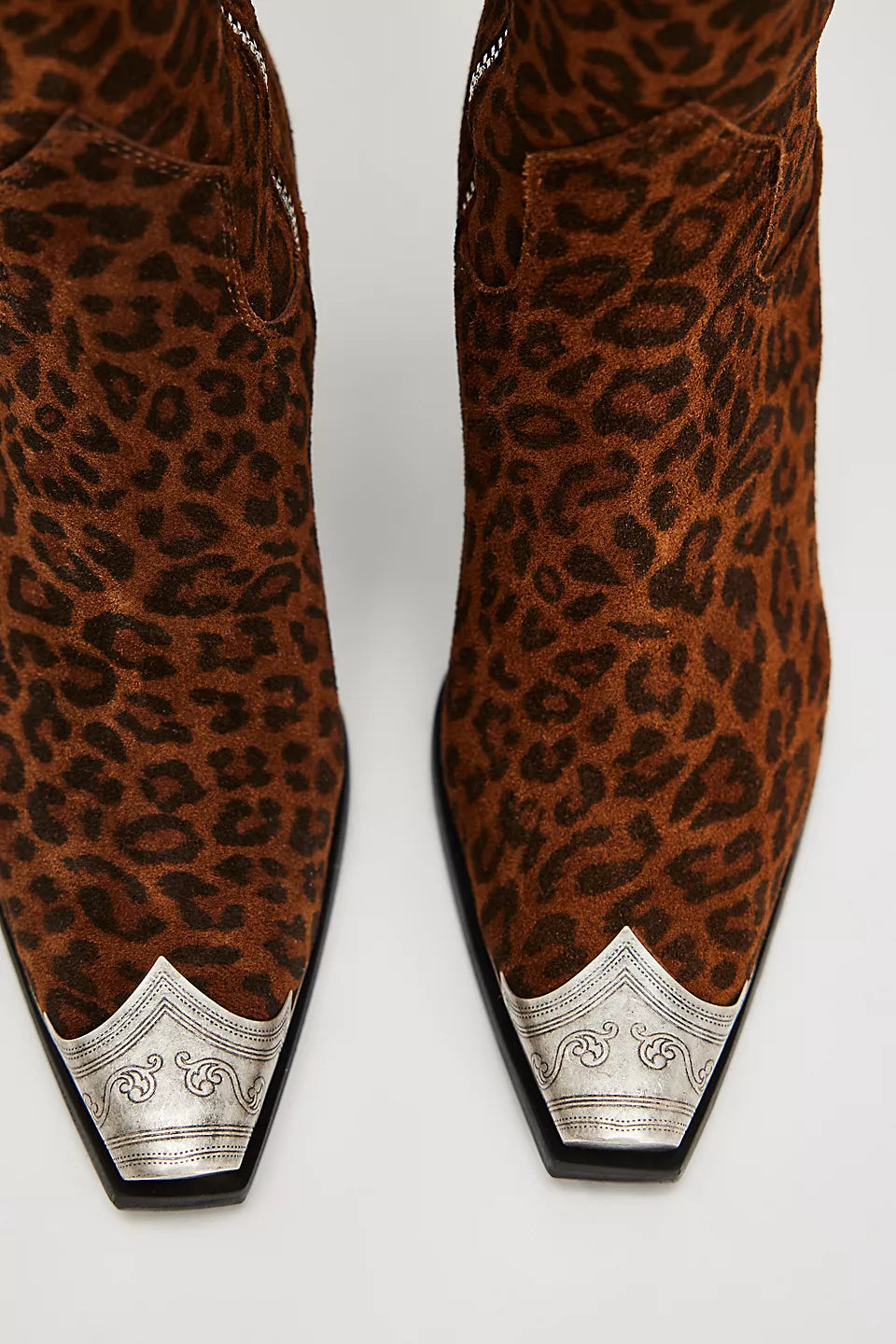 Gorgeous Italian-crafted leather boots featured in a western-inspired style with an etched metal toe, slim sit and stacked heel.