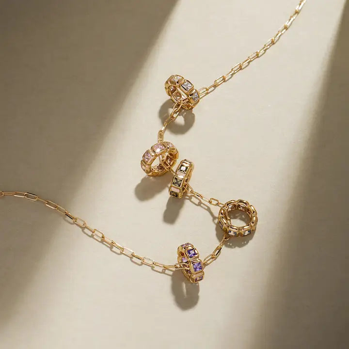A symbol of passion, this petite purple alexandrite charm features Asscher cut CZs in a modern bezel, proving that small things can hold big meaning. Thoughtfully designed for effortless layering, its low-profile shape offers space to stack more of what matters- capturing each moment, memory, or milestone along the way.