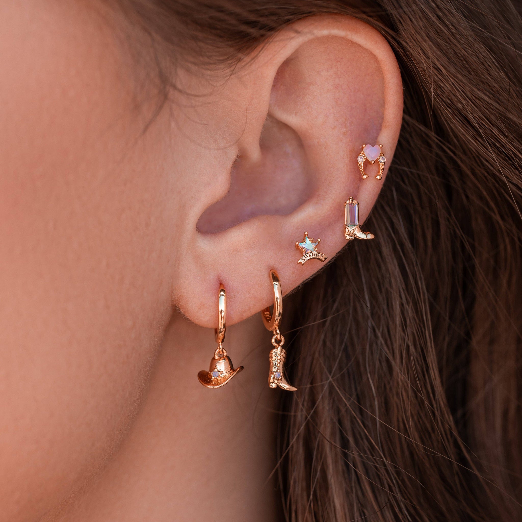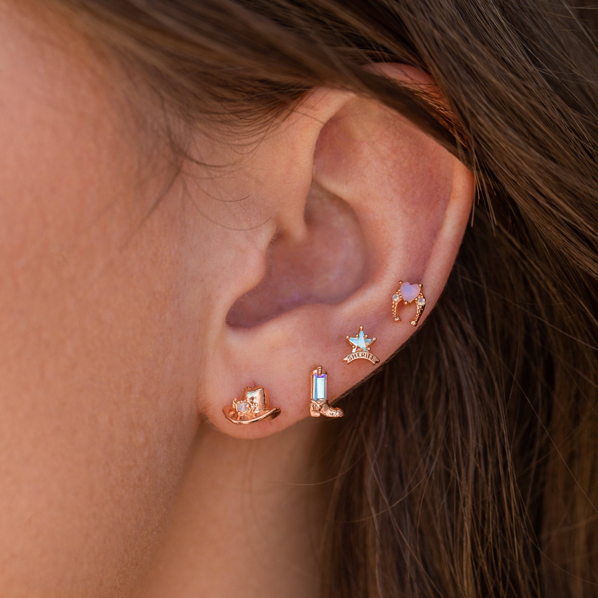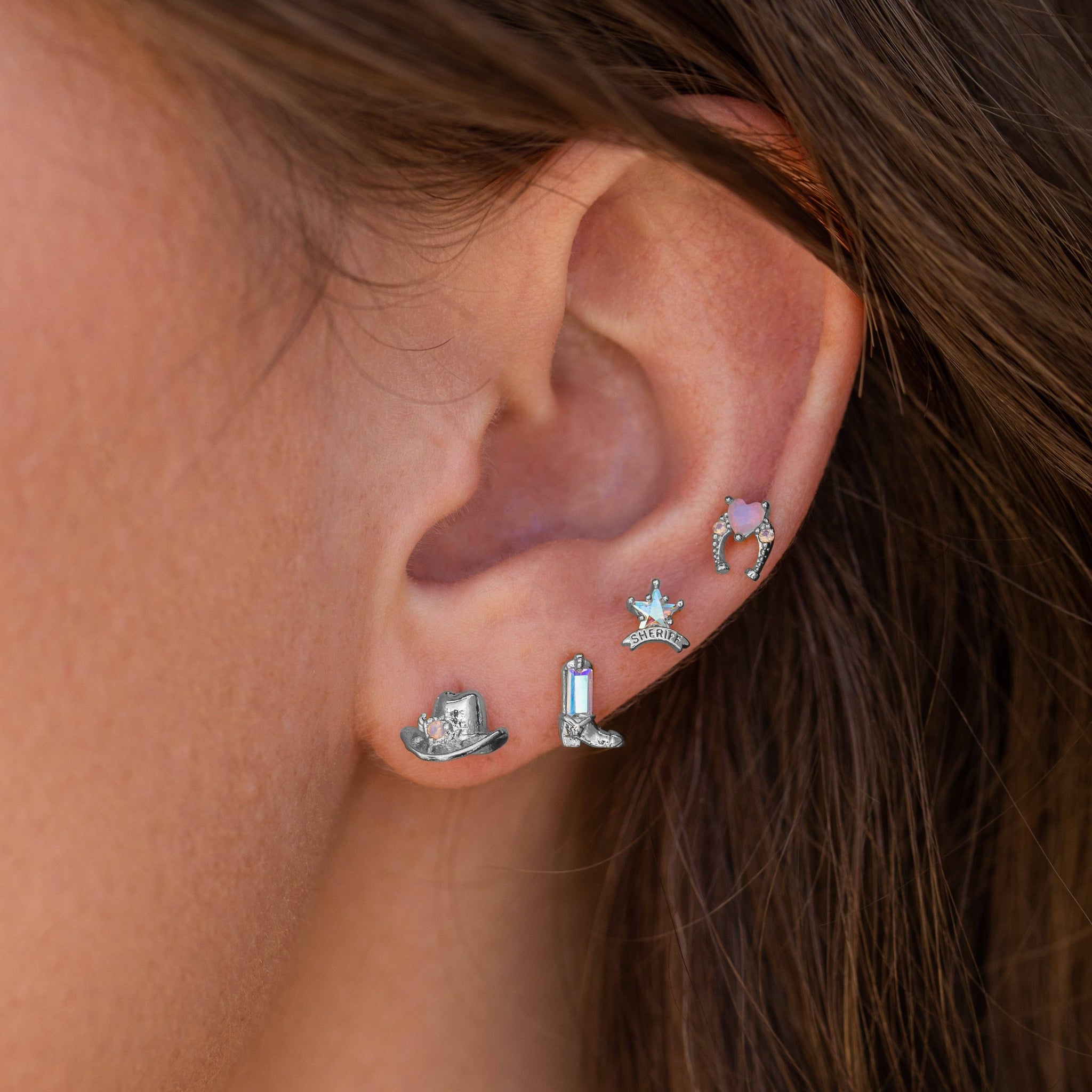 You moseyed on over here for a reason, and we've got just the thing! Our Cowgirl Stud set features iconic western symbols, including a cowboy hat, sheriff's badge, horseshoe, and cowboy boot, all adorned with an array of eye-catching stones. With this beautifully unique set, you'll be the star of your rodeo and ready to ride off into the sunset in style. So saddle up and show off those western charms!